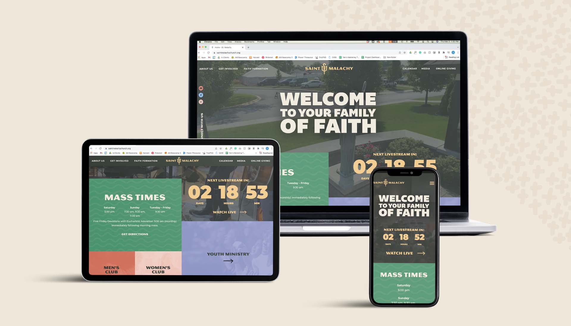 After COVID, it had become more clear than ever that the folks looking to connect with St. Malachy would be checking them out online before ever darkening the doors of the church itself. This, coupled with the extraordinary strength and abundance of media being created and delivered by the communications team, meant that the website was more important than ever to connect with their audiences in a more impactful way. Utilizing the newly established branding kicked things off in a unique and exciting way, and from there, it was all about bringing to the forefront the things that St. Malachy does better than anyone around them: personal connection and moving media. With everything from moving homilies and passionate worship to daily reflections and studies on the saints, AM was able to help them connect with their communities in a way they had never been able to before.