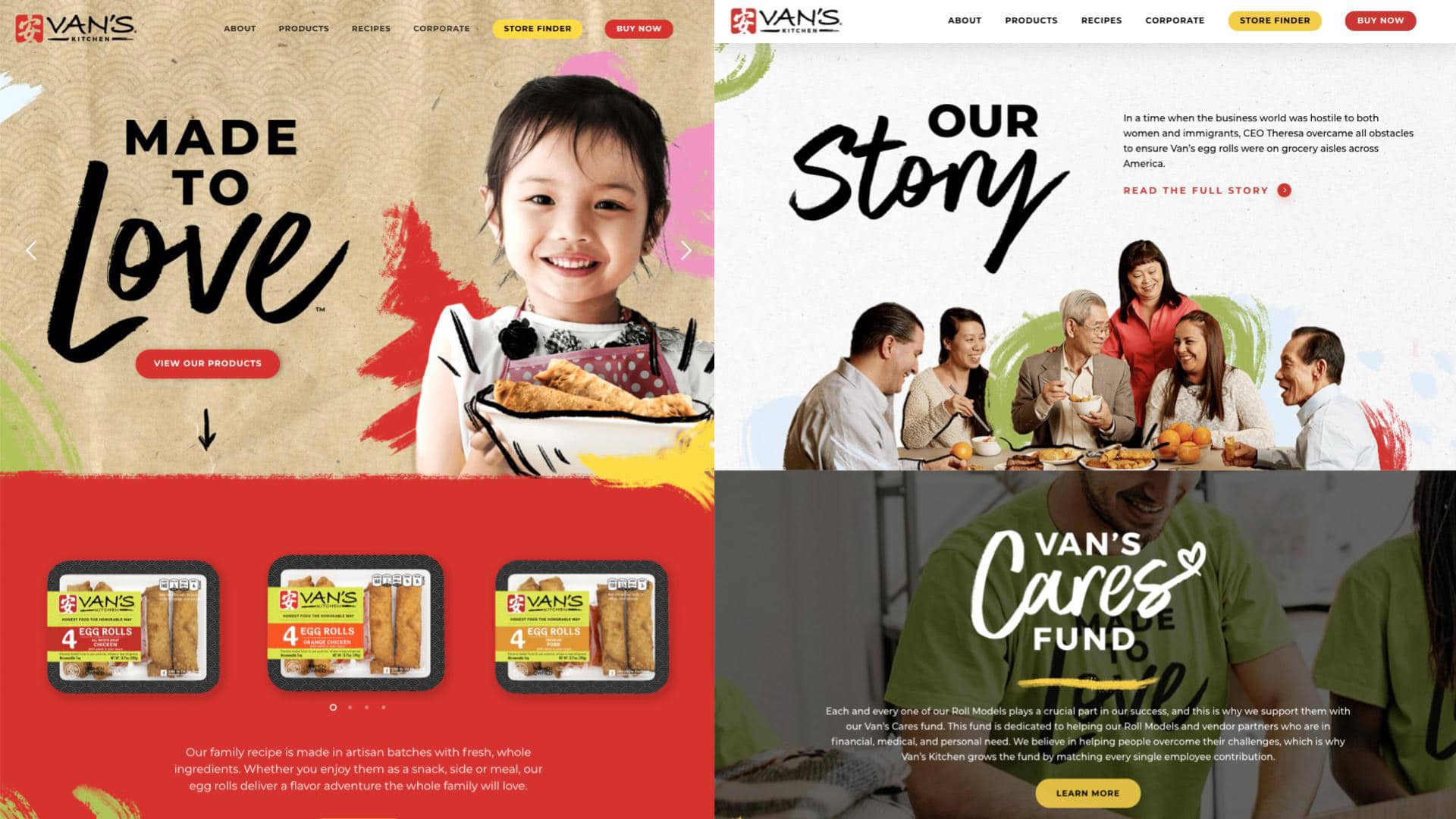 When we first met with Van’s Kitchen, they were an established business looking to expand their opportunities. They’d been selling egg rolls for more than 30 years at thousands of retailers across the country, but knew they weren’t tapping into their full marketing potential. Messaging was failing to connect on a deeper level, and they needed a perspective shift.